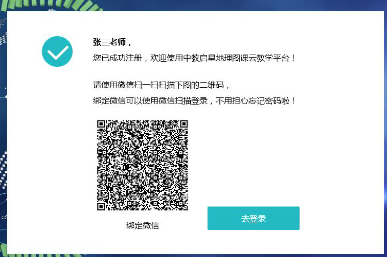 注册成功后,开启微信的扫一扫,扫描图中的二维码,将账号与微信绑定,方便用微信扫一扫登录。