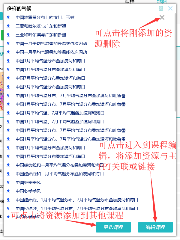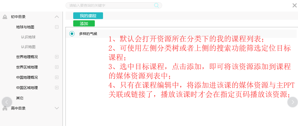 1、选中某地图,点击添加到课程,进入添加到课程界面,选择合适的课程,点击添加;