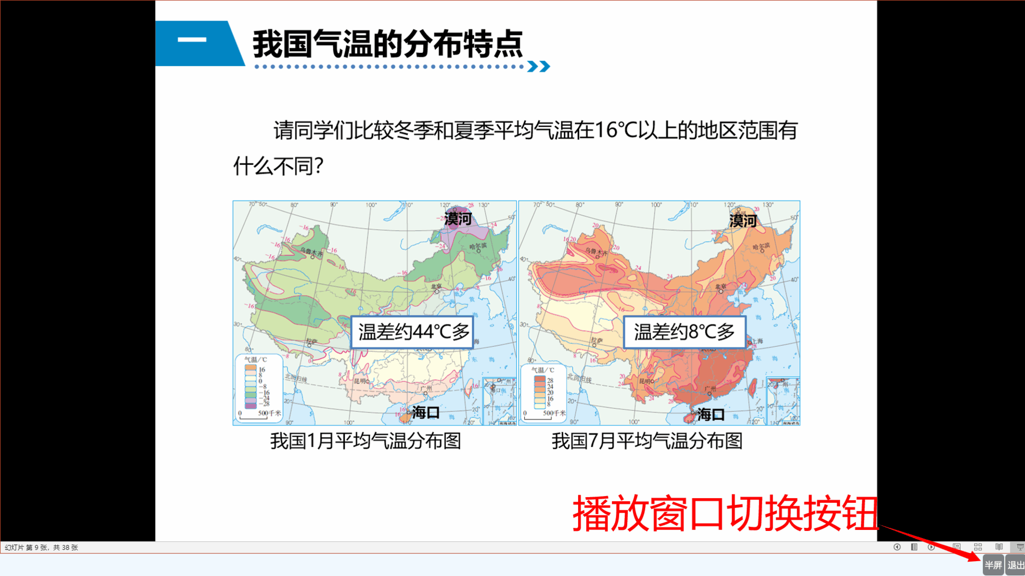 ■ 课程播放窗口控制 2种状态:全屏/半屏相互转换,根据实际屏幕的分辨率自动适配。