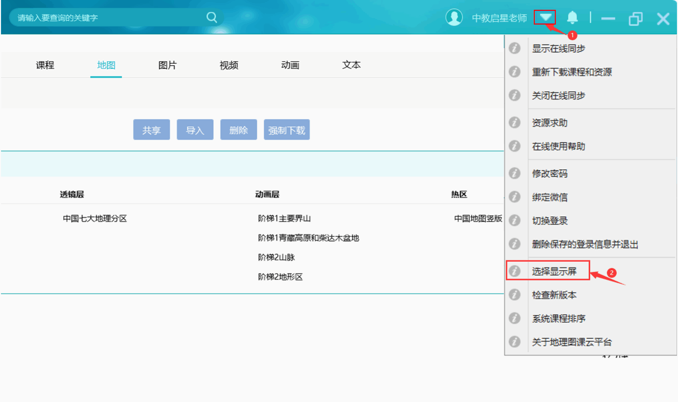 选择播放到某一块屏幕:地图和ppt都播放到这块屏幕,分屏模式和全屏模式都在这一块屏上切换;