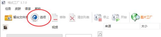 在格式工厂默认界面中选中“选项”